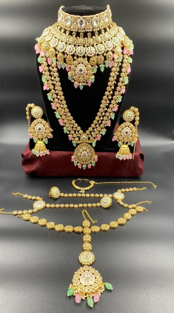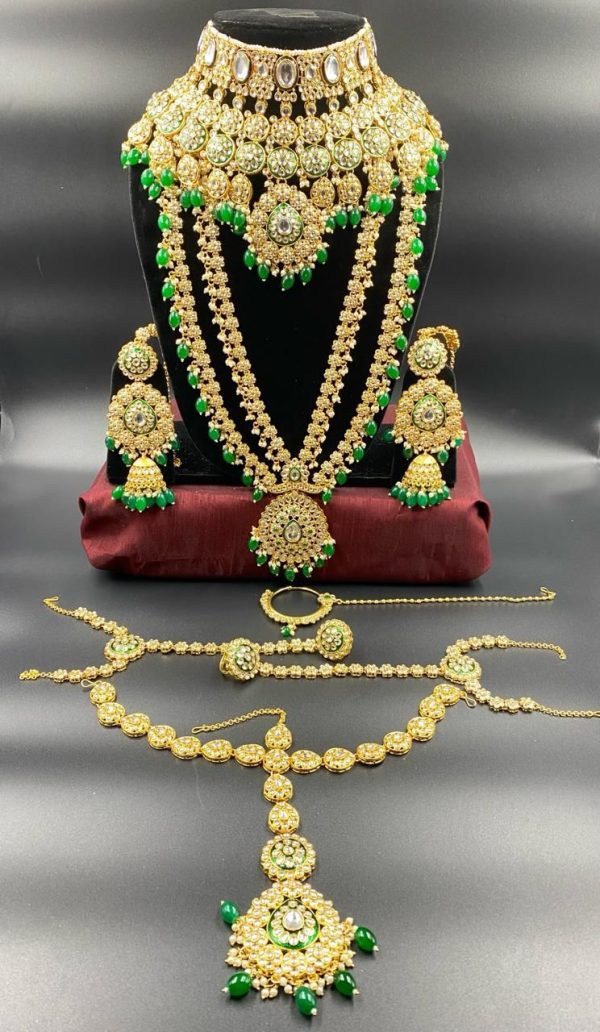 Work: Pachche Kundan-moti / pearl drops and hydro beads