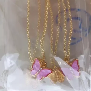 Pink-Black-Lavender Set of 3 Gold finish pendent chain