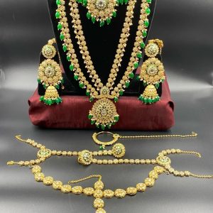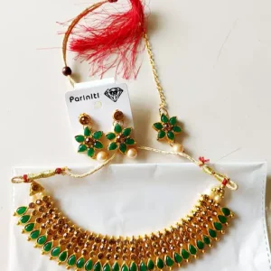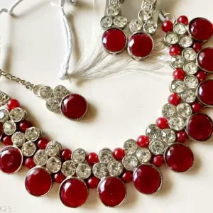 Red and White stone neckless set with earrings, mangtika for bridal collection