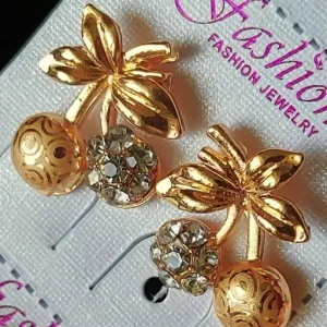 Gold-N-Stoned Cherry-N-Leaves shape studs